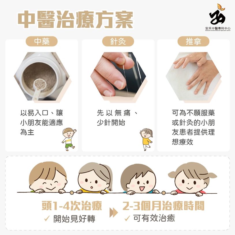 如小朋友未能配合中藥或針灸治療,仍可透過推拿來達到理想療效。