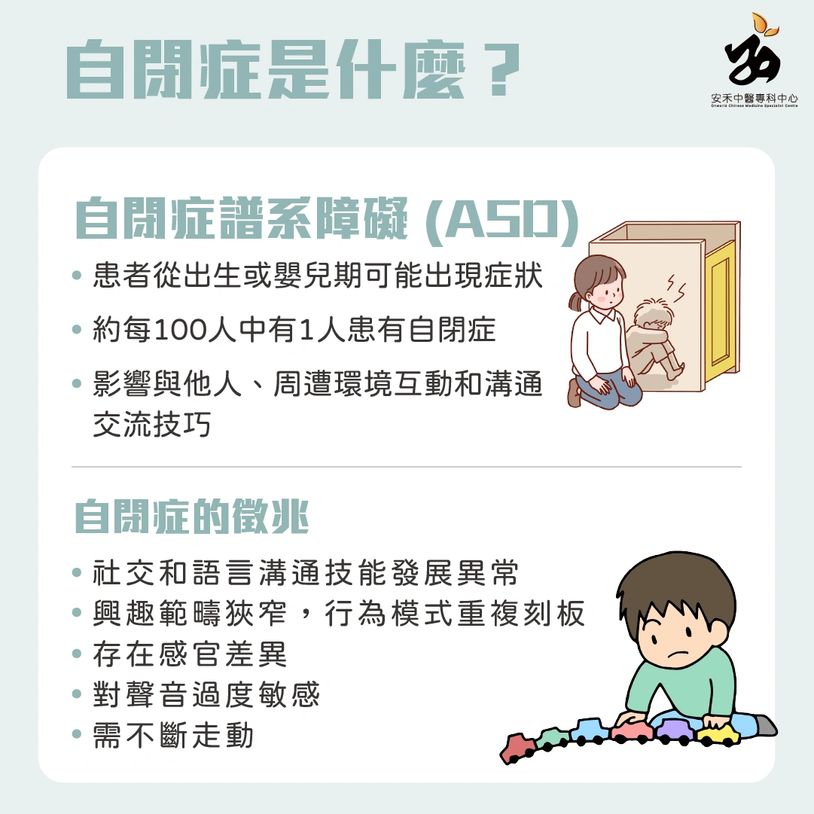 自閉症譜系障礙(ASD)簡稱自閉症,是一種終身的發展障礙,患者由出生或嬰兒期便可能出現相關症狀。